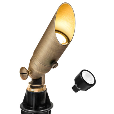 Low Voltage Mini Size Brass Spotlight, Shroud Adjustable, 12V AC/DC, 3W, 180lm (MR8 Bulb Included)